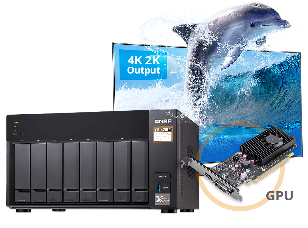 Ngoài ra, người dùng có thể cài đặt graphics card để tăng hiệu năng hệ thống và cho phép chuyển mã video 4K và đầu ra HDMI; cài đặt một card mạng không dây (ví dụ: QNAP QWA-AC2600) để sử dụng TS-x73 như một trạm cơ sở không dây, cho phép người dùng truy cập trực tiếp vào NAS, bao gồm các dịch vụ NAS và kết nối Internet.